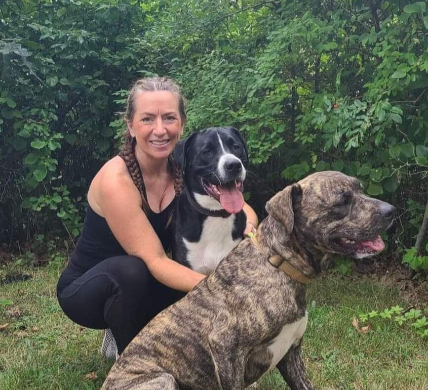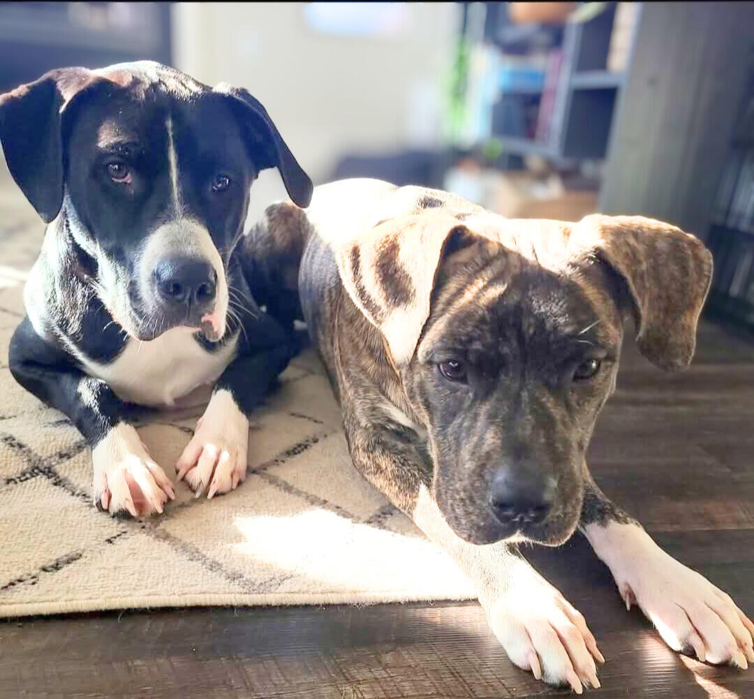 Six months later, I was four days away from moving to Michigan when I saw a brindle dog limping down the side of the road — a dog I'd literally dreamed about nights before. His front left leg was broken. He was thin, exhausted, and clearly done fighting. The emergency animal hospital told me he'd likely be euthanized that night. They had hundreds of dogs they couldn't help, and this one needed too much.That's all I needed to hear. In that moment, I knew: I had two dogs now.That dog became Marty.