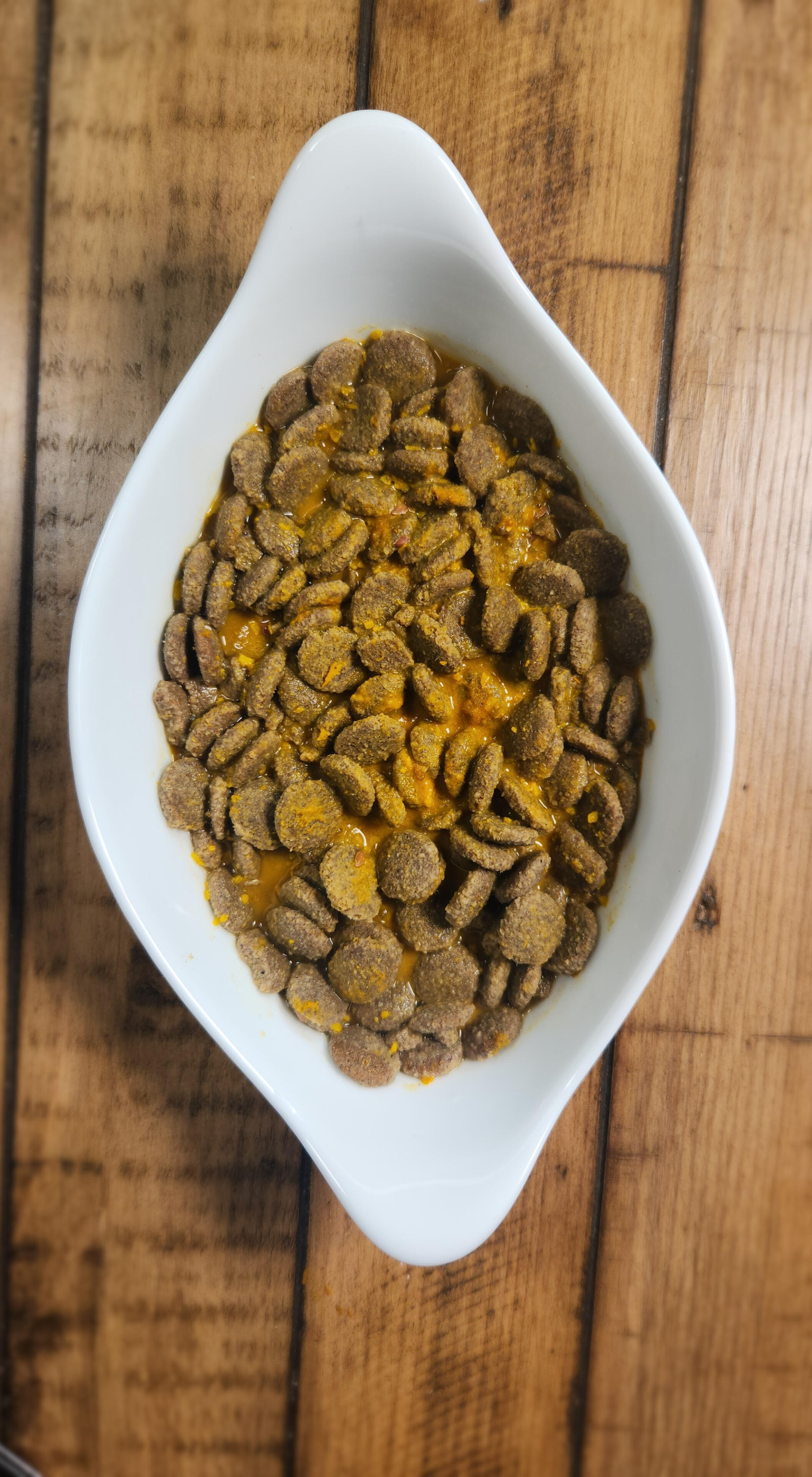 Add water to their meals. That's it. A quarter to half cup of warm water per cup of kibble, plus a nutrient-dense topper like Morning Vitality Blend, transforms a dry, nutrient-depleted meal into something their body can actually work with. The kibble softens, the nutrients release, and your dog's digestive system gets to do what it was designed to do — without fighting for every drop of moisture.Why a topper matters beyond hydration: